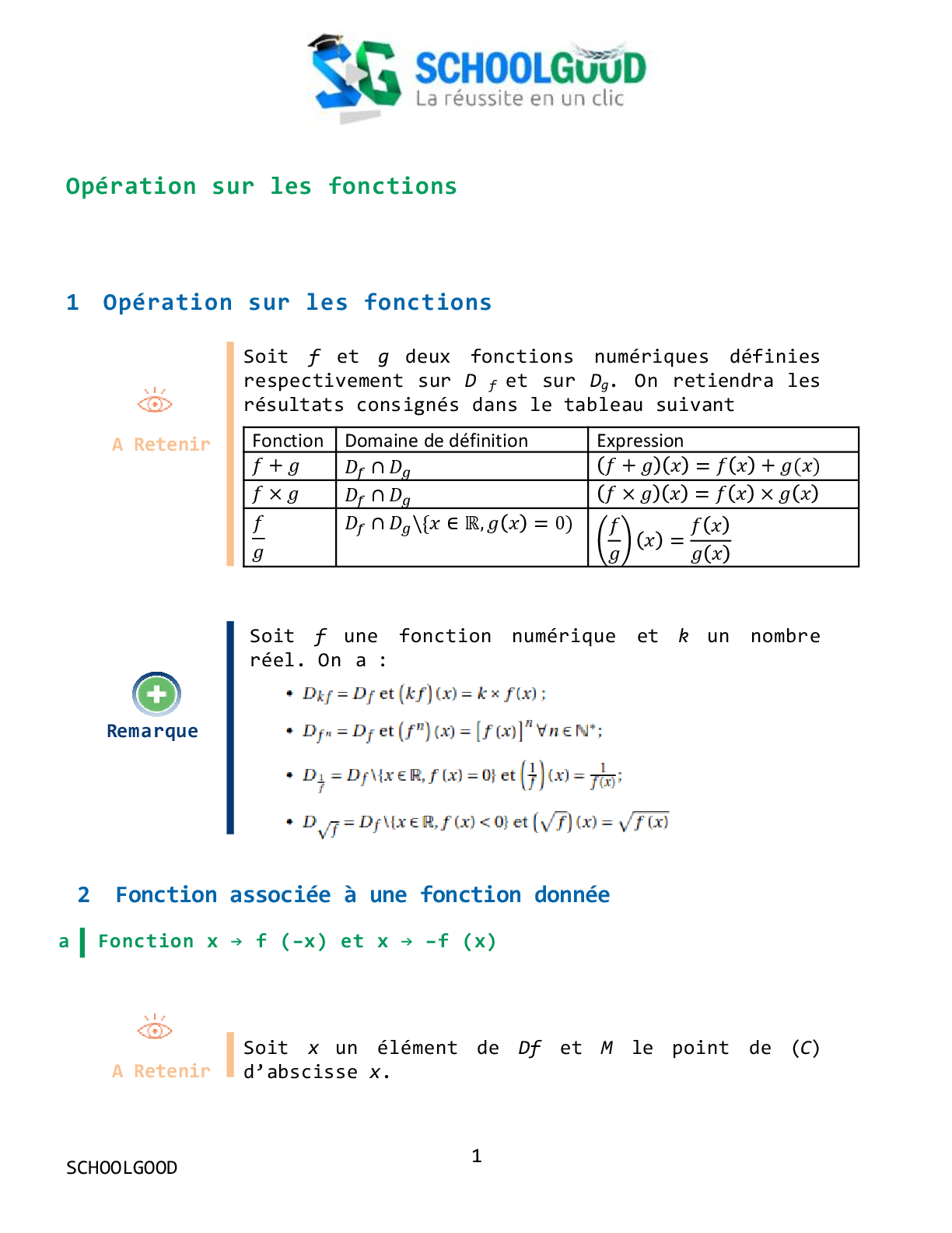 Operations sur les fonctions